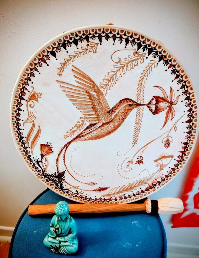 Un tambour, venu par guidance, bat le rythme du cœur universel et accompagne les passages intérieurs.